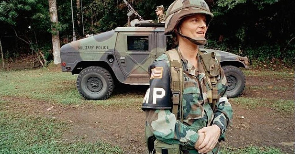 U.S. Army Captain Linda Bray was leading a Military Police company in Panama during Operation Just Cause. The U.S. invaded the country to oust the dictator Manuel Noriega, ensure the neutrality of the Panama Canal Zone and uphold the Torrijos-Carter Treaty. Bray’s platoon was ordered to neutralize a canine unit belonging to the Panamanian Defense Force and prevent their communicating warning of the invasion. When her unit, the 998th Military Police Company, approached the dog kennel building, they instead found an arms cache and a unit of the Panamanian special forces.