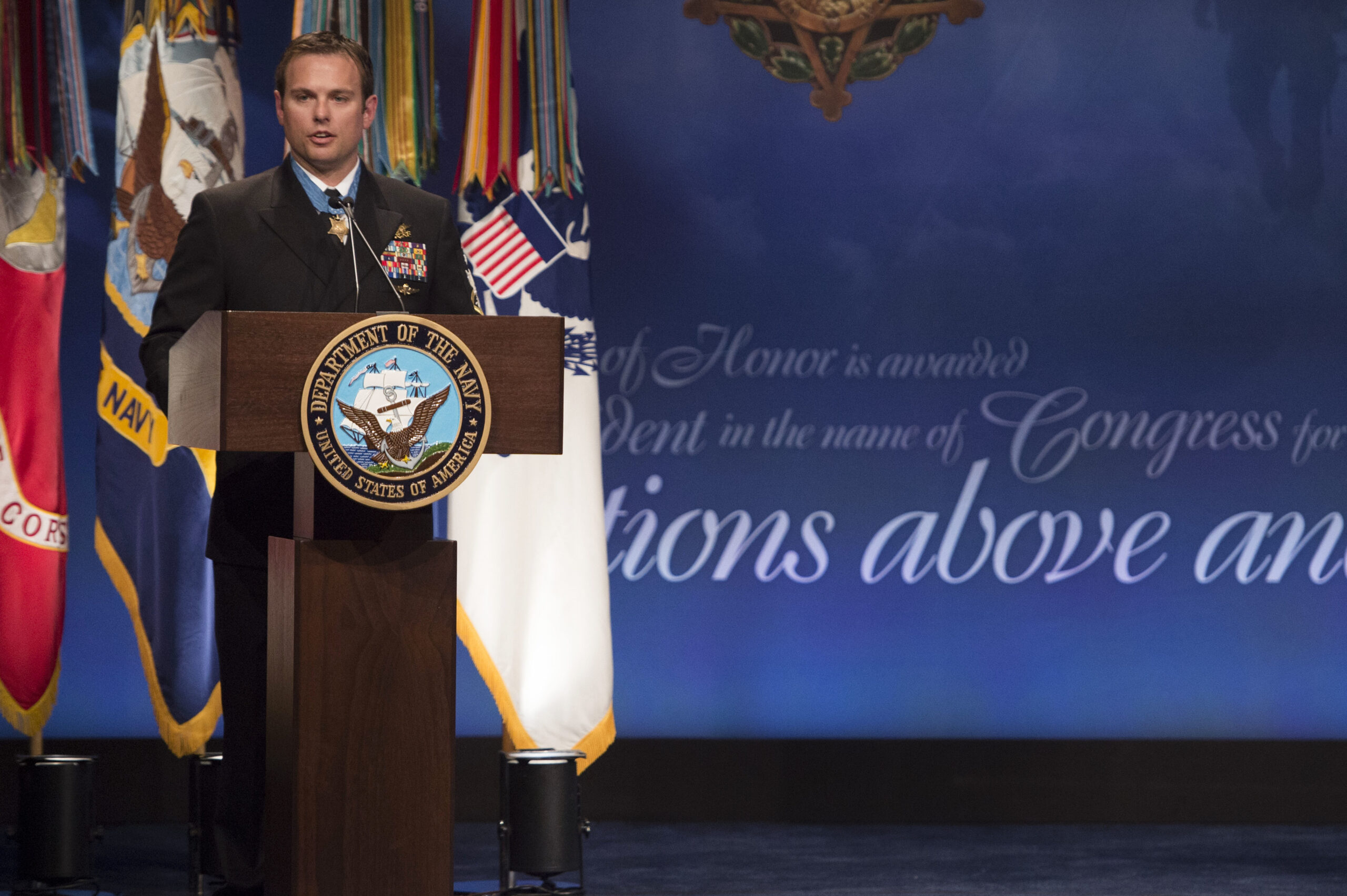 Chief Byers noticed the guard shifting through the darkness, and he knew that he had to act fast. The Taliban had concealed the entry to the building by hanging multiple blankets over the doorway. Placing himself directly in the line for fire, he removed the blankets, which hung from the ceiling like curtains. After the path was clear, the other members of the rescue team rushed inside. As the first American service member entered, the enemy fired, killing him.