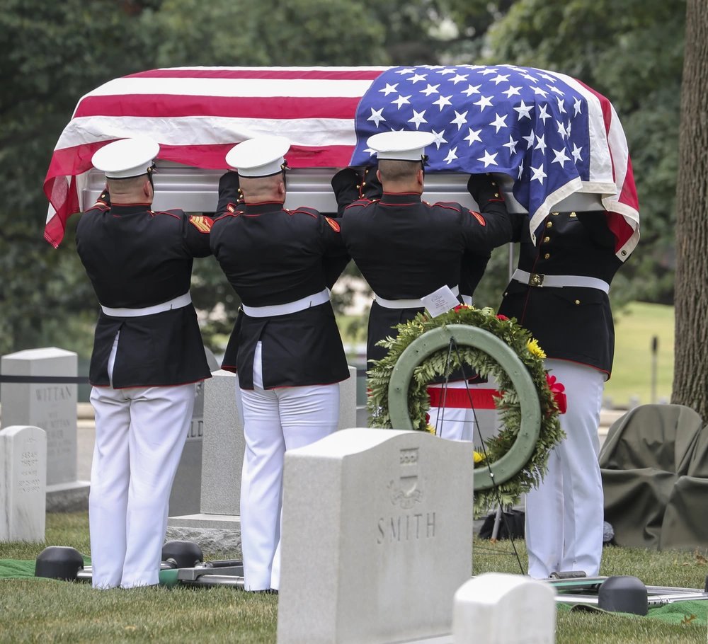 When the American flag is draped over the coffin, it is placed in such a way that the union blue field is displayed at the top and over the left shoulder. The flag is presented to members of the armed force and retired military veterans, is not positioned inside the burial site, nor is it permitted to come into contact with the ground. The flag is presented by members of the branch of the Armed Forces in which the person died while on active service. Additionally, the Department of Veterans Affairs provides the country’s flag for veterans, which are proffered to the closest relative at the final moment of the funeral. If there isn’t any next of kin, the flag is issued to an available family member or a close friend.