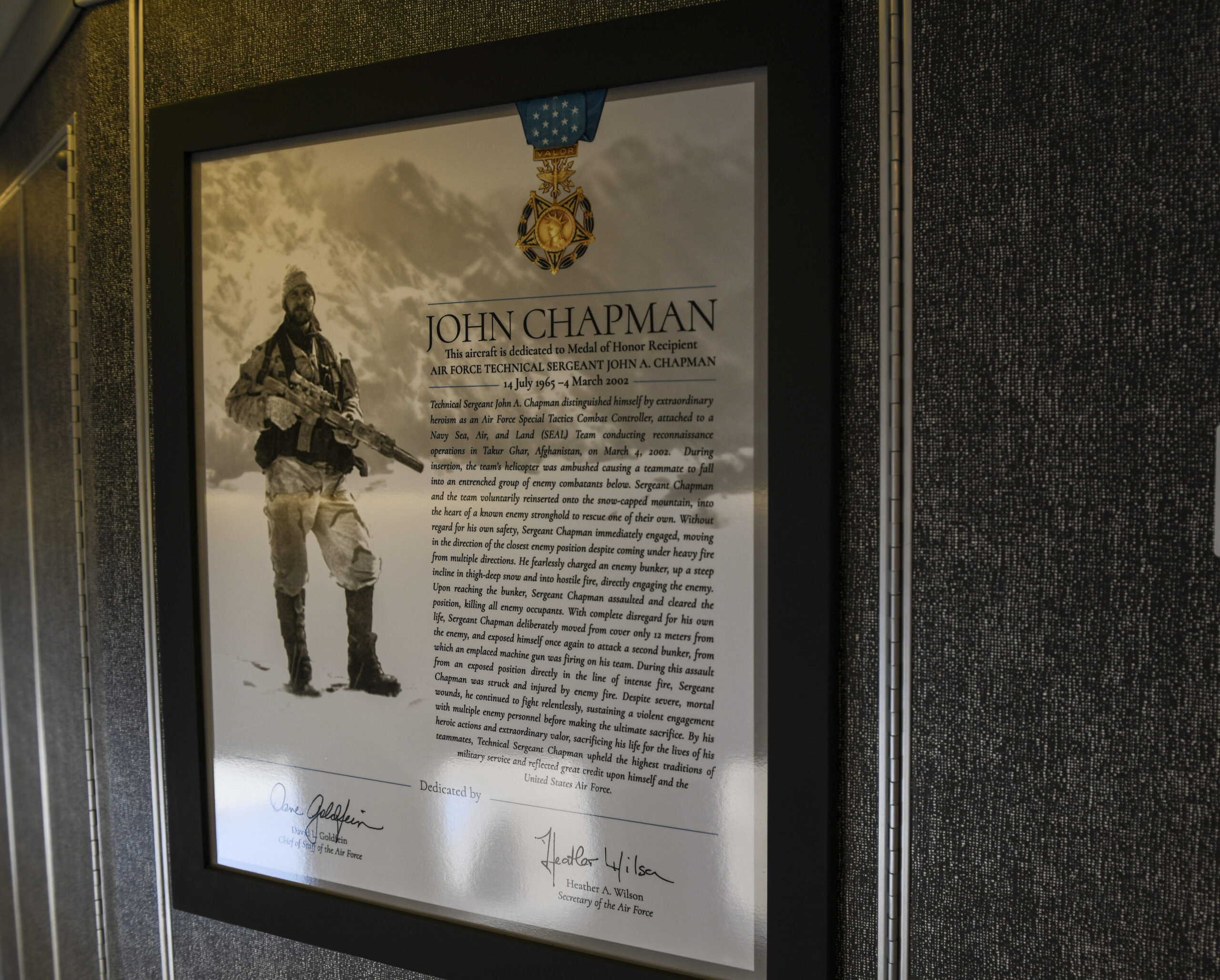 Master Sergeant John Chapman received a posthumous Medal of Honor for courageous action during conflict in Takur Ghar, Afghanistan. He was the first Airman to earn a Medal of Honor for service during the War on Terrorism.