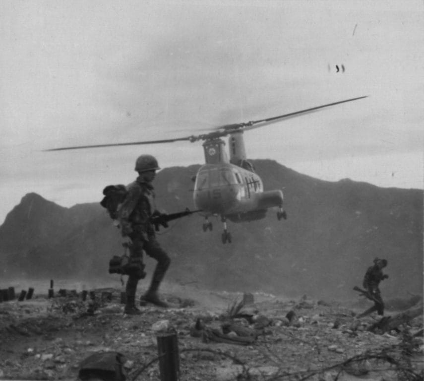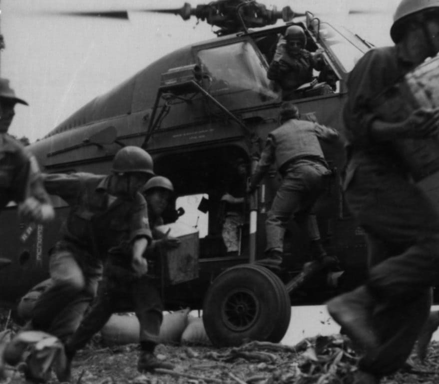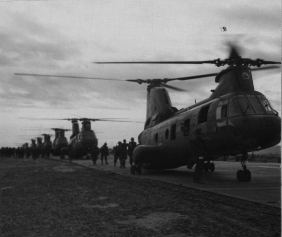 Army of the Republic of Vietnam Rangers board CH-46D helicopters from Marine Medium Helicopter Squadron 263. The ARVN Rangers spearheaded a multi-battalion Allied helicopter assault. Operation Durham Peak got underway as the first rays of sunlight glinted from the whirling rotor blades. (Photo: U.S. Marine Corps Gunnery Sgt. Bob Jordan)