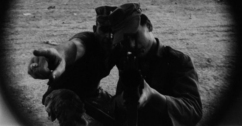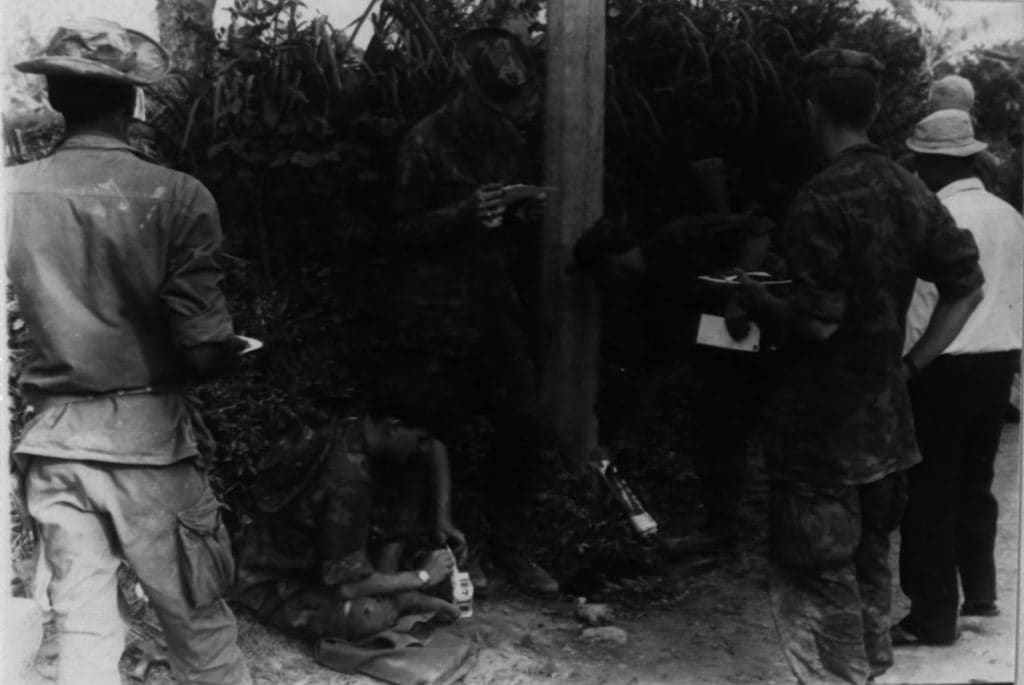 A Vietnamese Popular Force soldier and U.S. Marine Cpl. Gilbert J. Davis practice ambush techniques outside the compound of Mobile Training Team-1 near Tam Ky on July 28, 1968. The Vietnamese received two weeks of Marine training. (Photo: U.S. Marine Corps 1st Lt. Joe Collins)