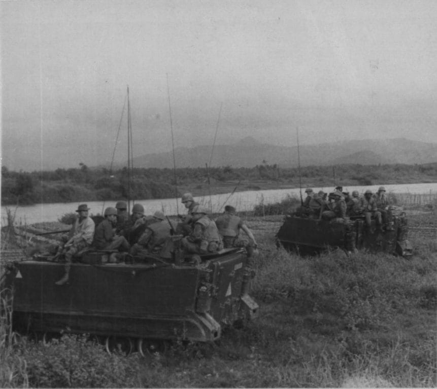 Marines on sweep with ARVNs on amphibious personnel carriers about 7 miles southwest of Danang on Jan. 8, 1970. (Photo: U.S. Marine Corps Cpl. R.D. Bell)