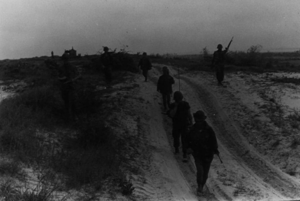 A patrol of Vietnamese Popular Forces and U.S. Marines of Combined Action Program, 3rd Marines, 3rd Regiment and 3rd Battalion, move out across dunes bordering Quang Xuyen village to the south of Danang on March 28, 1970. (Photo: U.S. Marine Corps Sgt. H.M. Smith)