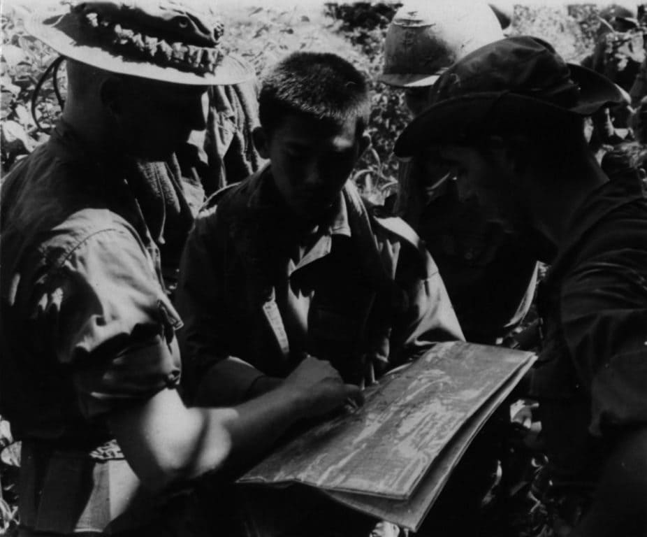 American and Vietnamese Marines are assigned their positions before departing for their night ambush site in 1970. (Photo: U.S. Marine Corps Sgt. R. F. Ruiz)