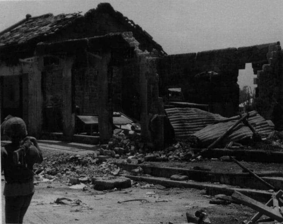 During the night of June 10, 1970, Viet Cong terrorist units attacked the villages of Phanh-Ban and Phanh-My near Danang for two hours. More than half of the villages were totally destroyed by fire and explosives used by sapper attackers because the villagers were loyal to the Saigon government and refused to support local Viet Cong activities or give rice to Communists. The few Popular Force Troops were surprised by the attack and more than 150 villagers were killed. (Photo: U.S. Marine Corps Sgt. Berkowits)