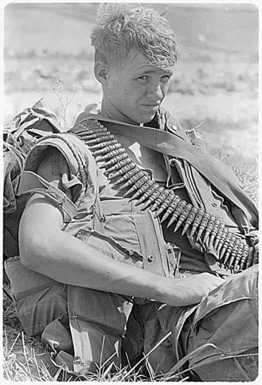 Private First Class Russell R. Widdifield of 3rd Platoon, Company M, 3rd Battalion, 7th Marine Regiment, takes a break during a ground movement 25 miles north of An Hoa, North Vietnam. (Photo: U.S. Marine Corps)