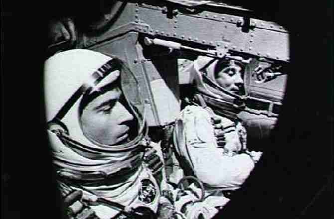 The crew of Gemini 3. Not pictured: pocket sandwich.