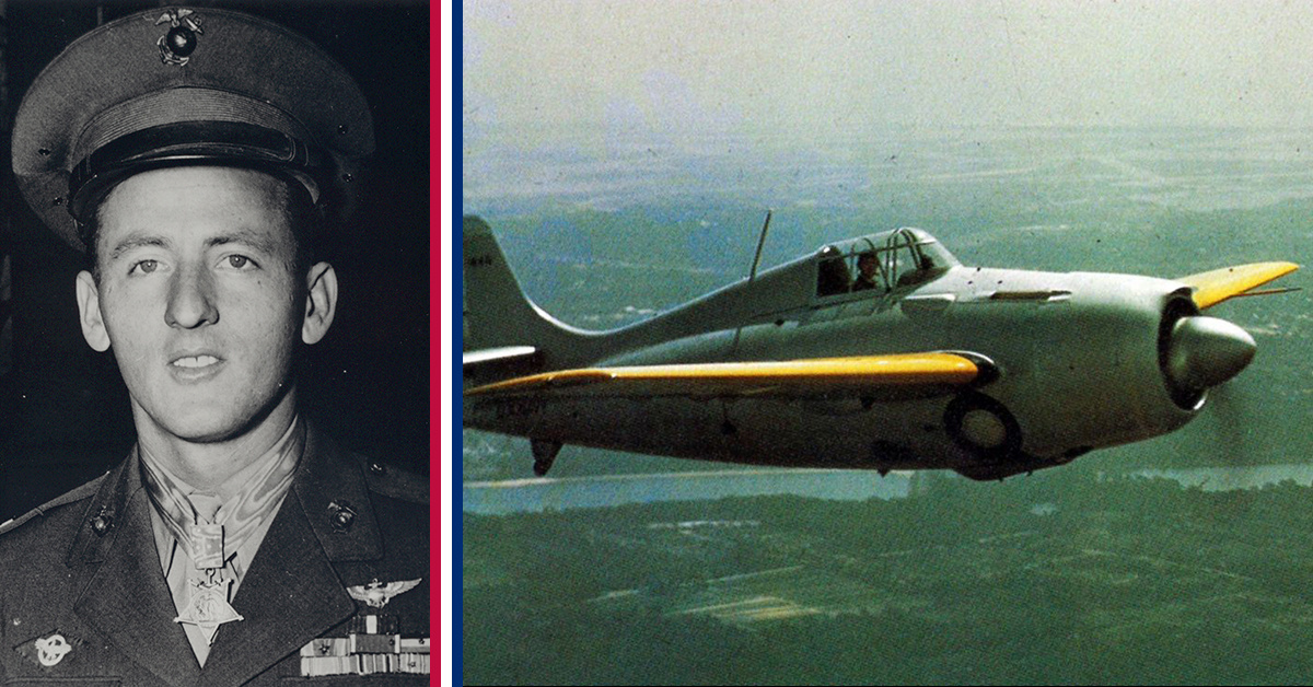 Marine Corps 1st Lt. James Swett was sent against Japanese fighters near the Solomons Island on April 7, 1943. He led his four-plane flight against 15 enemy bombers and successfully shredded three of them in a single dive. Now separated from the rest of his flight, he attacked a group of six bombers and downed four of them. While lining up on a fifth bomber, he ran out of ammo.