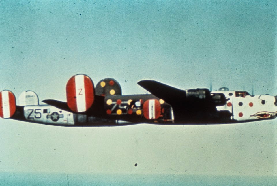 Painted in bright colors, sometimes with equally magnificent designs like zig-zag lines and polka dots, they made an easy find in the sky for fellow bomber pilots.