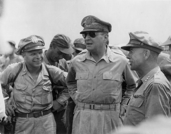 Bong’s flying career was accelerated by the Japanese surprise attack on Pearl Harbor and America’s entry into WWII. In January 1942, he was commissioned as a 2nd Lt. into the Army Air Force Reserves. Because of his established flying skill and aerial marksmanship, Bong served as an instructor at Luke Field, Arizona before transferring to Hamilton Field near San Francisco, California. There, Bong performed aerial antics and stunts in his P-38. Although he was reprimanded for flying a loop around the Golden Gate Bridge, Bong’s skill caught the attention of Gen. George C. Kenney.