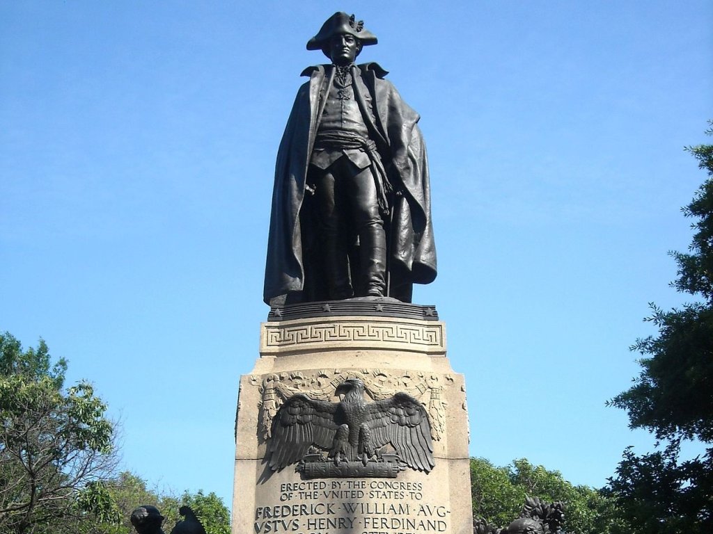 The bayonet was a solid weapon and he taught the Continental Army to use it. He would know, because he spent much of his life until that point fighting in European wars in the Prussian army. He drilled the Americans constantly, imposing strict discipline on them and forcing them to conform to a regimented way of war. He crafted the Army’s first field manual, “Regulations for the Order and Discipline of the Troops of the United States, Part I.”