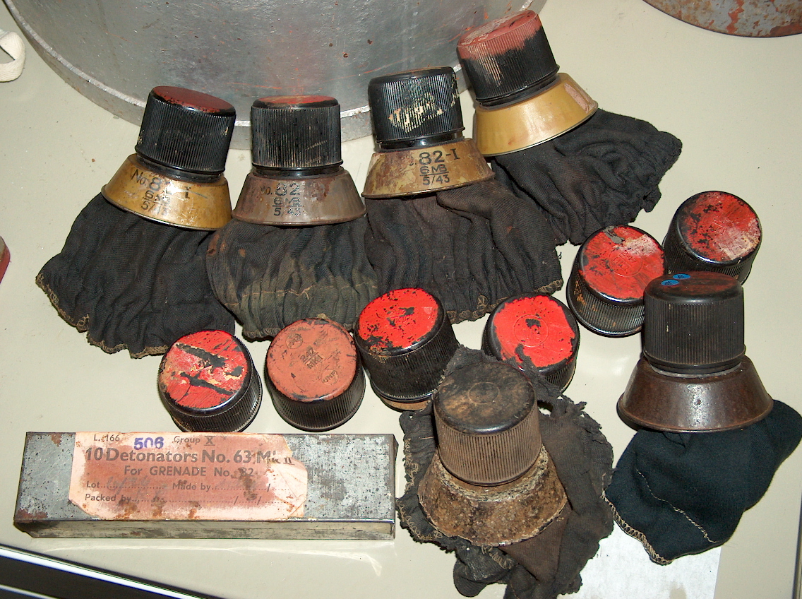 So a British airborne officer designed his own grenade. Capt. Jock Gammon came up with a simple sack connected to a piece of tape, lead weight, and allways fuze. (Allways meaning that it could be detonated by an impact from any direction; it would go off if it landed in any of ALL the WAYS it could fall.) It was designated the No. 82 grenade and named for him.