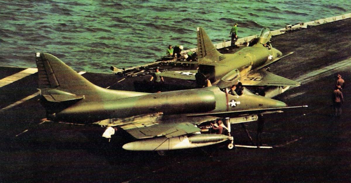 When he was assigned to the fleet, Cernan flew the legendary A-4 Skyhawk with either VA-112 or VA-113, depending on the source. According to seaforces.org, both squadrons were equipped with the A-4B Skyhawk (then designated the A4D-2) when Cernan deployed on board USS Shangri-La in 1958 and in 1960.
