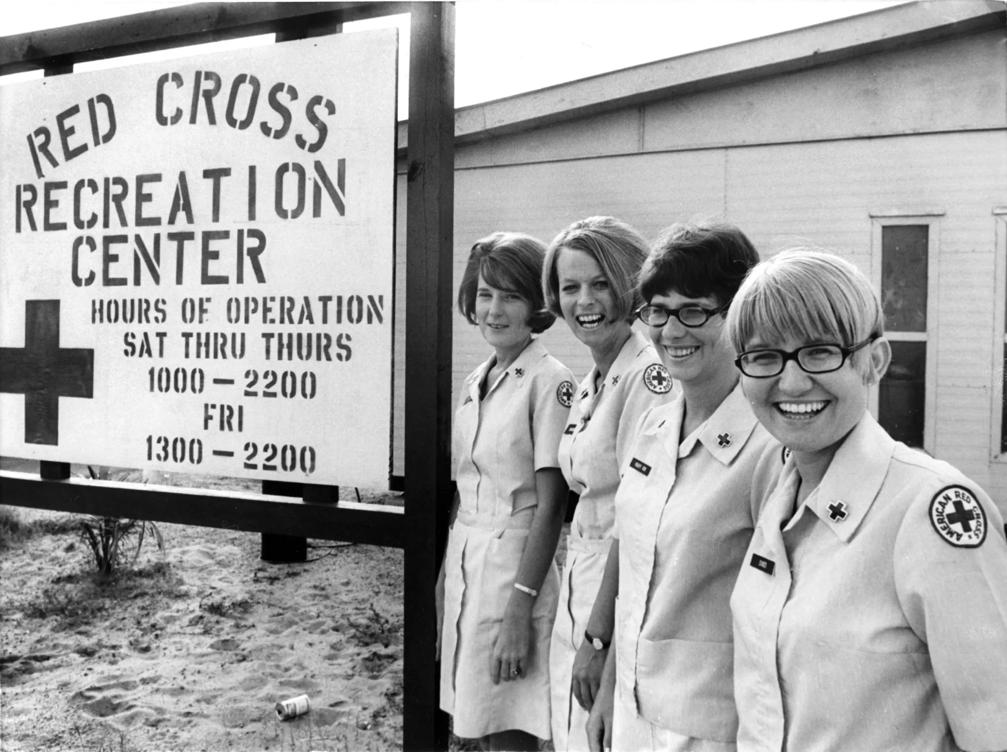 The “Donut Dollies” of the Vietnam War were part of the American Red Cross and officially called the Supplemental Recreational Activities Overseas (SRAO) staff. Understandably, the new name did not stick in country, and the “grunts of ‘Nam,” many of them the sons of GI Joes, and grandsons of doughboys, carried on calling the young American women volunteers “Donut Dollies.” These ladies had to be college graduates and for over ten years, from 1962 to 1973, over 600 volunteers traveled throughout Vietnam, by vehicle and helicopter, logging over two million miles.