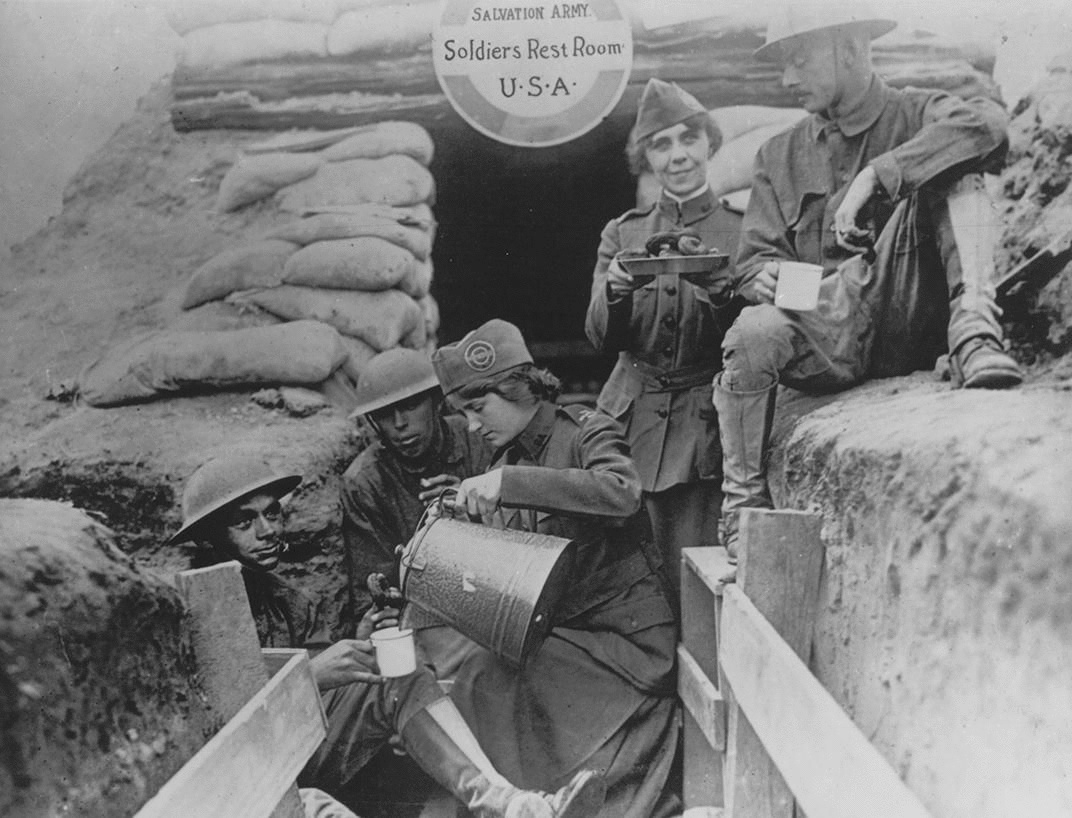 In 1917, the women of the Salvation Army were sent to the front lines of the western front with the American First Division. Knowing that what the troops probably missed the most was the kindness of home, they devised a way to bring that to them. And what says American homefront better than fresh pastries?