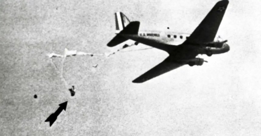 The plane dropped its single package with the leg and other supplies into the town with a note attached: