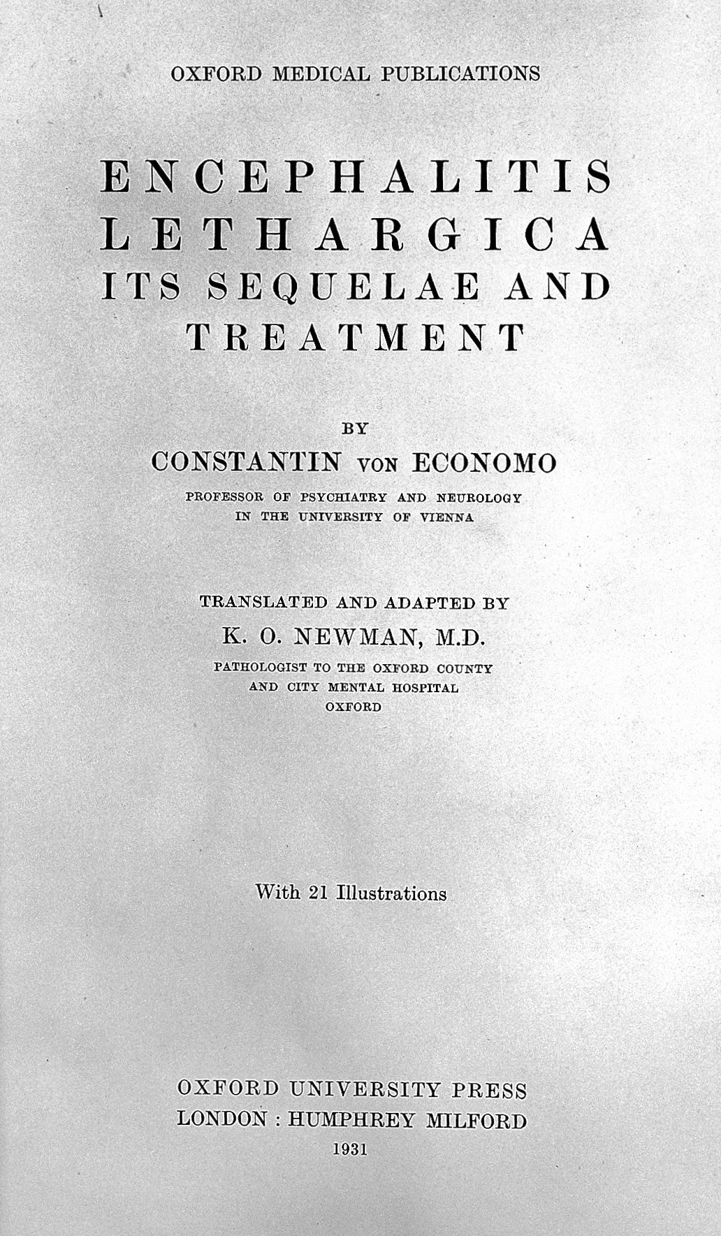 The title page of Constantin von Economo’s 1931 description of encephalitis lethargica.