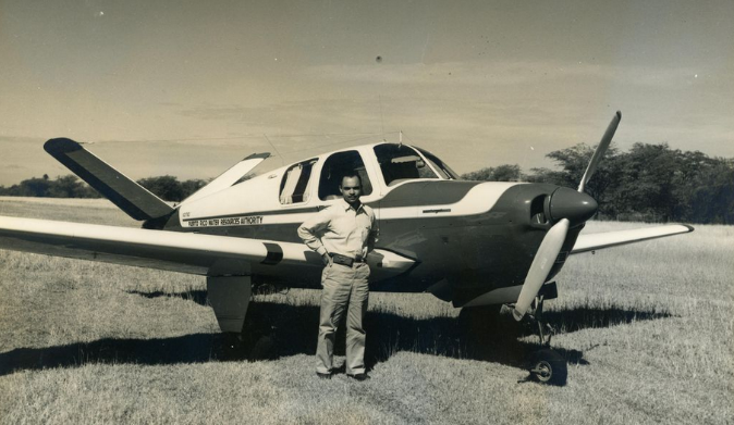 Young with the Beech Bonanza that he flew for the Puerto Rico Water Resources Authority (NASM/Courtesy Linda Young-Ribeiro)