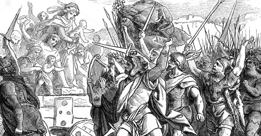 He marched his entire force toward the weakest part of the Germanic army: its camp. When the legions arrived, the Germanic women were in the army’s wagon train, shouting, screaming, and wailing… at the Germanic men.