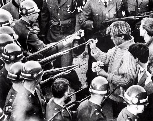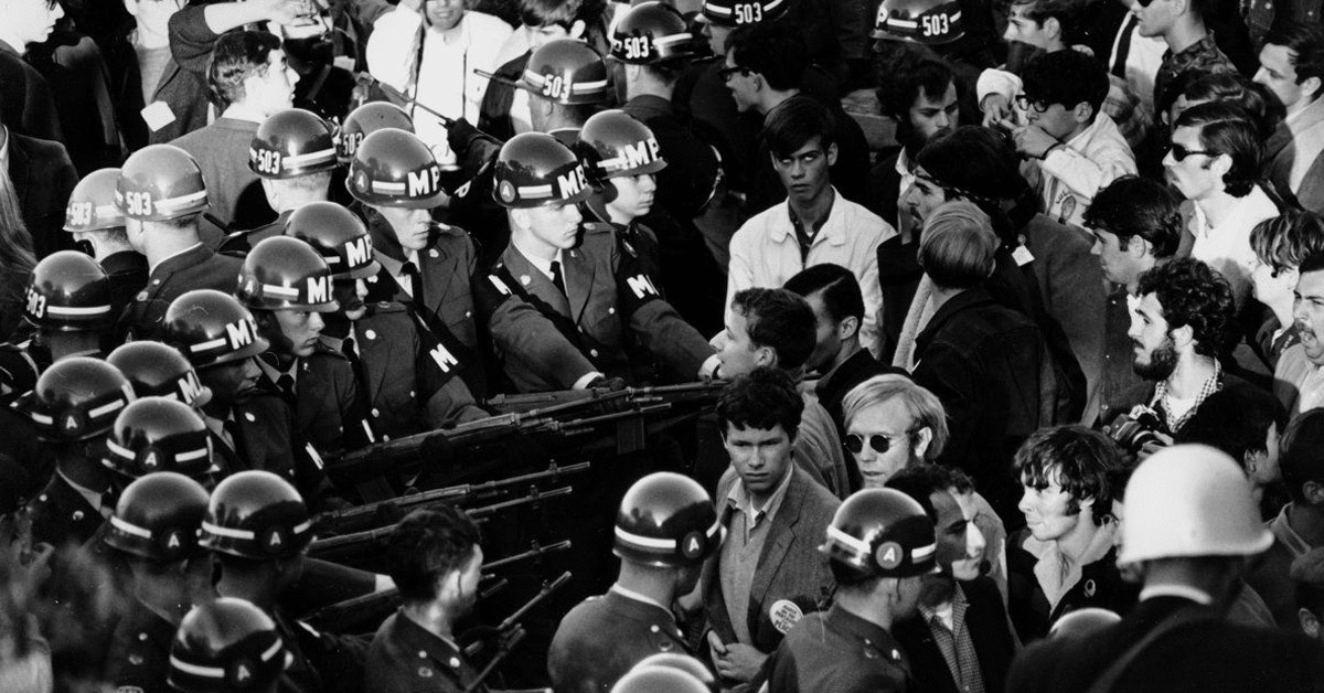 The day began with a series of speeches on the National Mall, one of which saw Dr. Benjamin Spock declare President Lyndon Johnson to be the real enemy of the people. The crowd then marched across the Arlington Bridge to the Pentagon, where they were met by members of the National Guard and the 82nd Airborne who firmly stood their ground on the steps of the building. This is where one hippie, calling himself “Super Joel,” famously put a flower in the barrel of one of their rifles.
