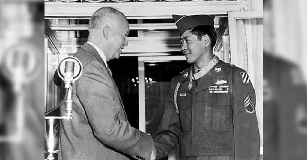 On Oct. 27, 1953, then-Sergeant Miyamura — he had been promoted while in captivity — received his award from President Dwight Eisenhower at the White House and returned to Gallup where the city’s schools were let out, businesses had been closed, and some 5,000 people greeted him as he got off the train.