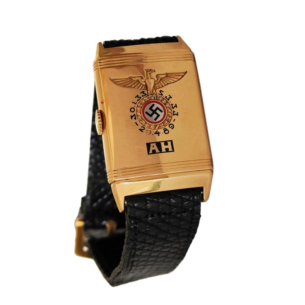 Of course, it’s the unique engravings that identify the watch’s previous owner. The protective casebook bears a Nazi eagle, swastika, Hitler’s initials, and three dates. First, 20.4.89 denotes Hitler’s birthday, April 20, 1889. Second, 30.1.33, was his appointment as Chancellor of Germany. Finally, 5.3.33 marks the date of the German federal elections that gave Hitler access to the full power of the German government.
