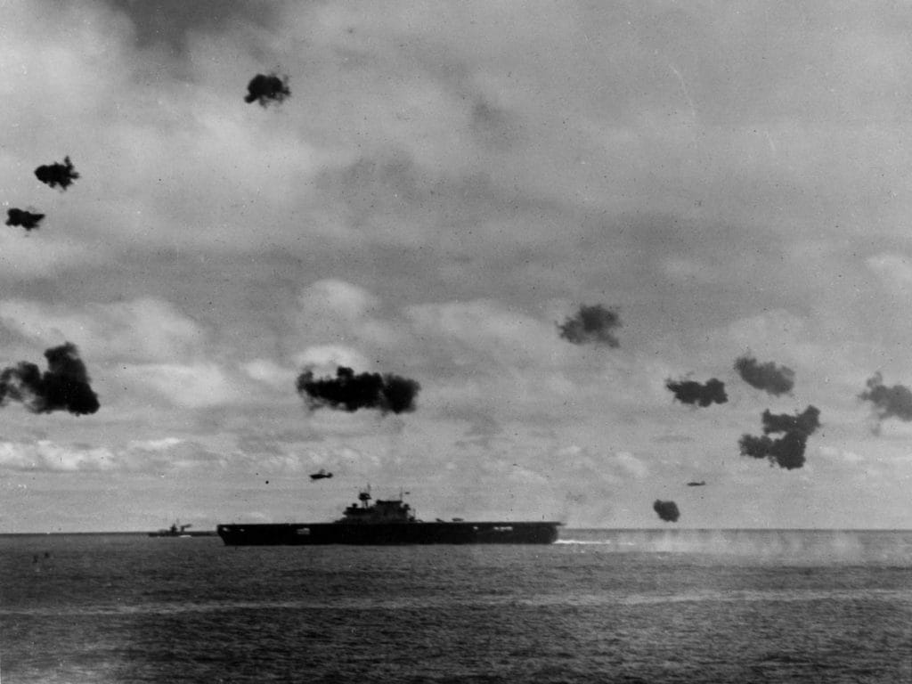 The tipping point came at the Battle of Midway when American forces sank four fleet carriers and a heavy cruiser.