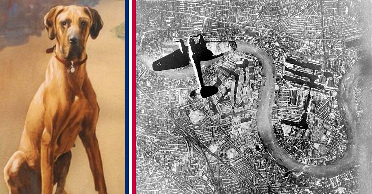 In April 1941, a German incendiary bomb fell through the roof of the house where a Great Dane named Juliana and her owner lived. Juliana reportedly walked over to the bomb, stood over it and urinated on it. By marking the incendiary device, Juliana extinguished it and prevented the fire from spreading. For her actions, she was awarded the Blue Cross medal. The first animals to be awarded the medal were horses that had served in WWI.