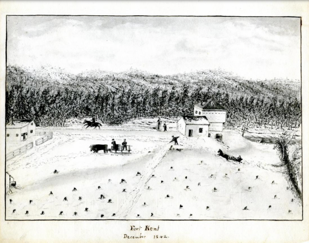 When John Baker, an American with a land claim, arrived in Madawaska, he built a lumber mill and then declared Madawaska an independent territory, complete with a flag made by his wife. When authorities from New Brunswick hauled him off to jail, they took the flag. His wife raised another one. When Baker was convicted of sedition, the U.S. Army sent troops in to build a fort.