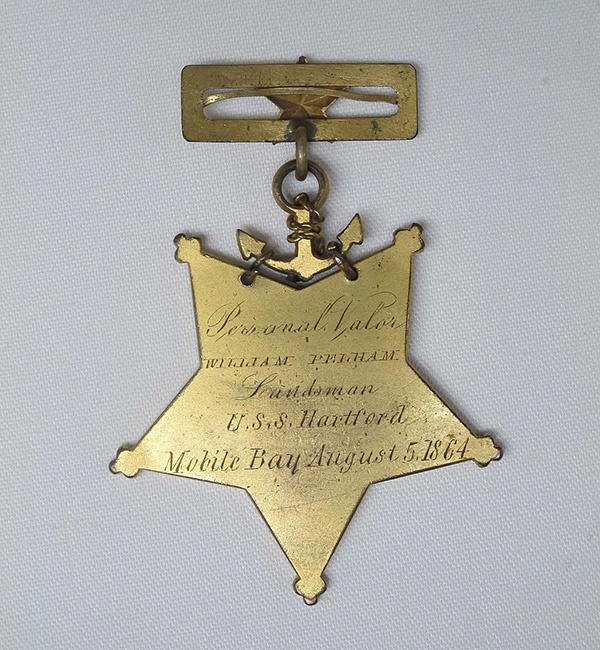 The Navy was the first service authorized to present Medals of Honor, but the Army beat them to the punch. Still, hundreds of medals were awarded to deserving sailors for actions taken during the conflict, including this one presented to William Pelham for actions on the USS Hartford in 1864.