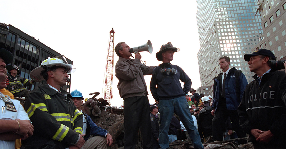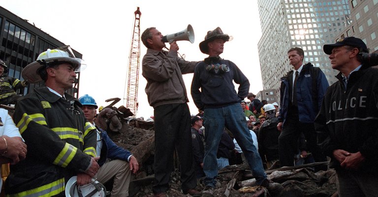 Another “love him or hate him” President, the younger Bush enjoyed the Pax Americana for just a few short months before the whole world changed before our very eyes. George W. Bush was known for many things, but being a fantastic public speaker was not one of them—few would dispute that. But his most American moment came right after the attacks that changed the world, when he tried to speak to the American people.