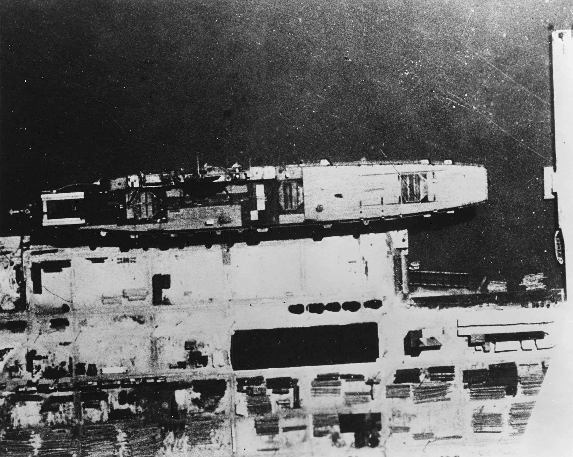 On the night of August 27, 1942, Graf Zeppelin was attacked at Gotenhafen. Three British Avro Lancaster heavy bombers from the RAF’s 106 Squadron sortied specifically to attack the German carrier. Each aircraft carried a 5,600lb bomb with a shaped charged warhead to punch through the ship’s armor. Although one bomber reported a direct hit on Graf Zeppelin, no record exists of damage to the carrier that night. It was the only Allied air attack directed specifically at Graf Zeppelin during the war.
