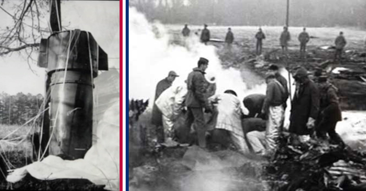 In 1961, a B-52 bomber was flying over the great state of North Carolina when it began to break apart. Its entire right wing failed and the plane began falling towards earth. The order was given to abandon the plane, and eight crewmembers attempted to escape. Five survived.