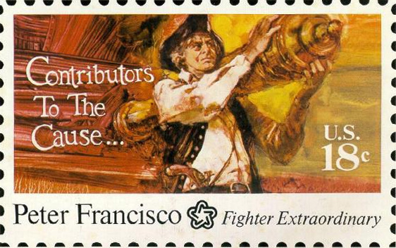 During the Battle of Camden, Francisco noticed a 1,100-pound cannon in a field next to some dead horses. According to legend, he managed to lift the canon and take it, saving it from falling to British hands. For this courageous act, the U.S. Postal Service design a stamp in Francisco’s honor.
