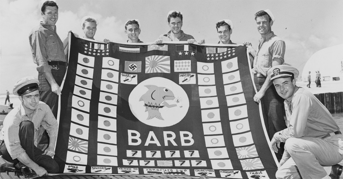Barb’s battle flag could now boast one enemy train “sunk” in combat, along with six Navy Crosses, 23 Silver Stars, 23 Bronze Stars, and a Medal of Honor earned by members of its crew.