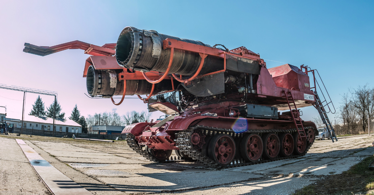 “Big Wind” is a 92,600-pound beast made from a tank chassis and two turbojet engines that are powerful enough to blow out oil fires like candles on a birthday cake. While it looks ridiculous and would be nearly useless in a tank fight, this modified military hardware fought some of the largest fires set by Saddam Hussein‘s withdrawing army in the 1991 Persian Gulf War.