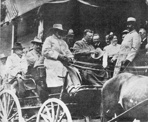 On May 15, 1903, Theodore Roosevelt arrived at Raymond, California to begin his adventure into the Sierra Nevada. He and his entourage had rooms at the Wawona Hotel, but he only ate lunch there. He was far more interested in mounting his horse and seeing as much of the park as he could. He visited the Mariposa Grove of giant trees, taking pictures, and set camp for the first leg of his stay.