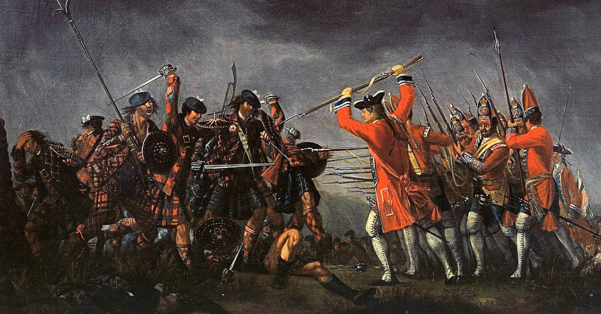 Battle of Culloden, where a Jacobite uprising supporting a Catholic claim to the British throne was ended by government forces.