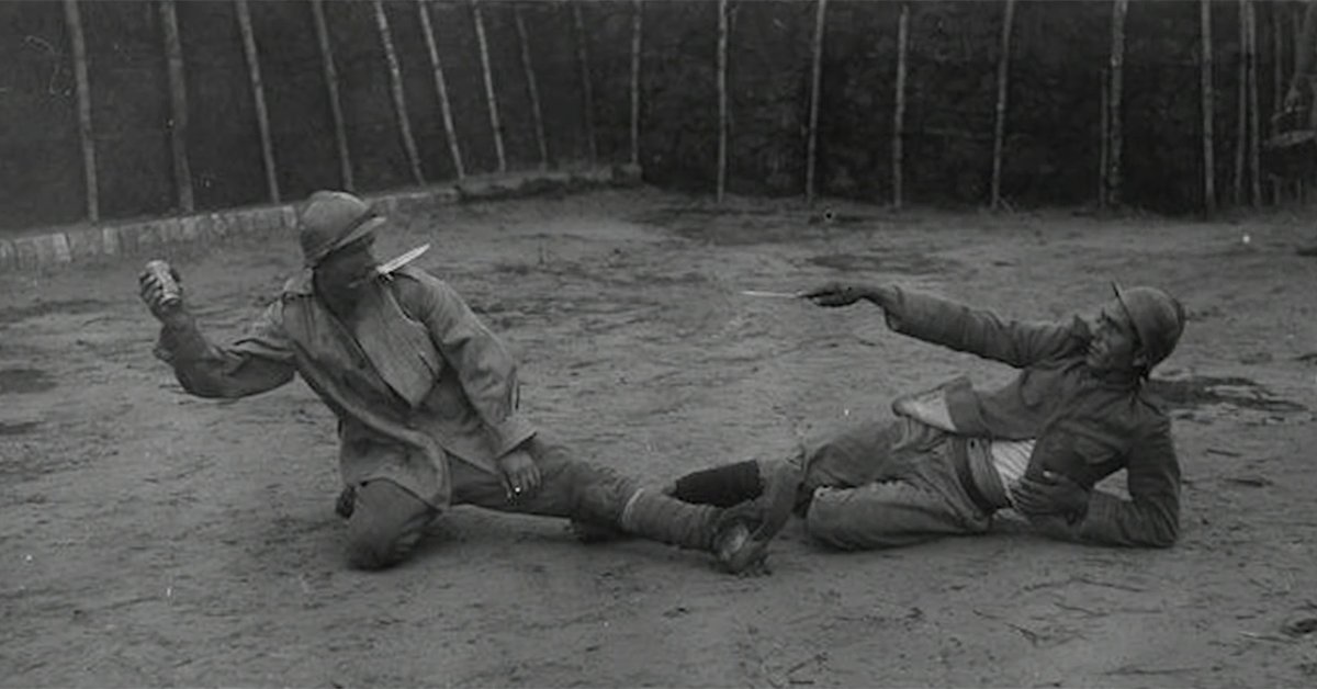 According to The Great War Youtube channel, once the bombardment ceased, the men would charge forward into enemy trenches, with only daggers in their teeth and grenades in their hands, with the goal of clearing and then holding their newly-earned positions until the relief of their fellow troops arrived, which could take up to a full day.
