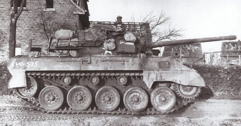 As newer German tanks like the Panther and the Tiger appeared on the battlefield, the Sherman’s combat ability in a tank-on-tank fight was diminished. To counter the new threat, the Sherman was equipped with thicker frontal armor and a new gun. In 1944, the U.S. fielded the 76mm M1 high-velocity long-barrel gun which could actually penetrate a Tiger’s armor from the front. The gun had already seen action with U.S. Tank Destroyer Battalions. Mounted on the lightly-armored M18 Hellcat tank destoyer, the 76mm M1 was undoubtedly a threat to the German tanks.