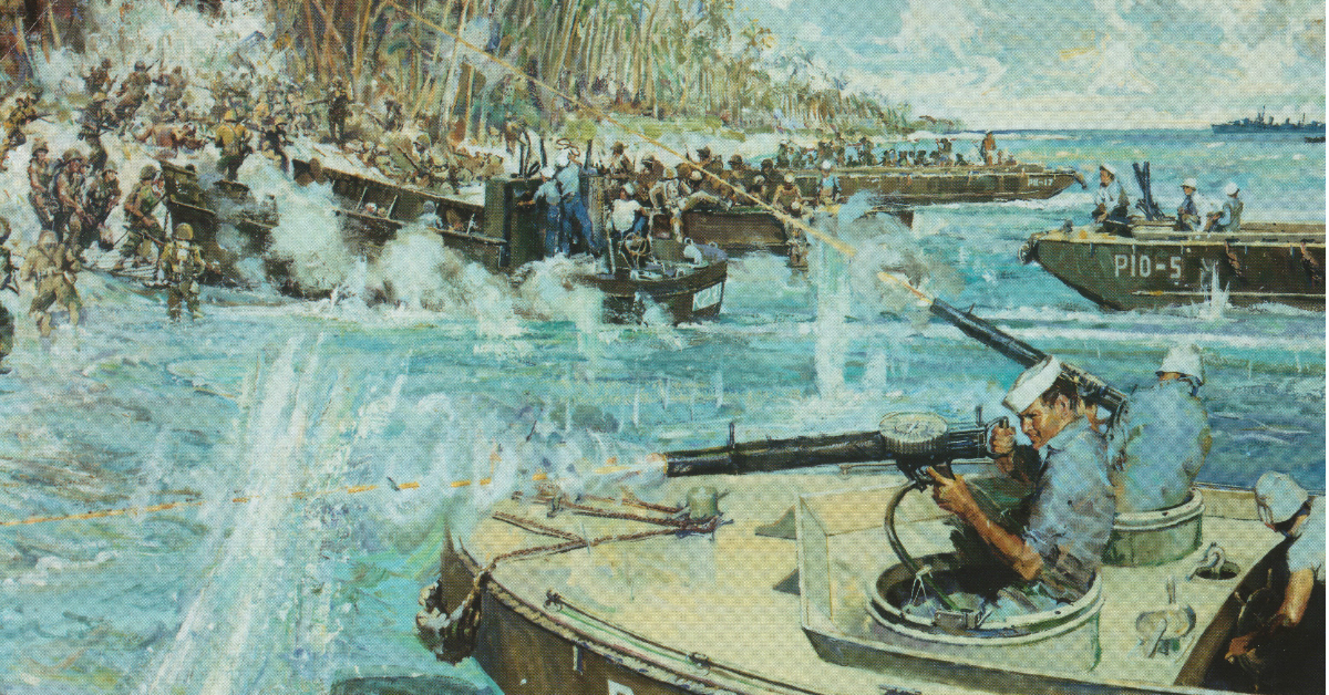 Japanese reconnaissance flew near the U.S. fleet as it approached the islands, but the Americans got a lucky break as storms limited visibility and the U.S. Navy wasn’t spotted until it was bombarding the beaches. Planes and naval artillery provided support as the Marines assaulted the surprised defenders.
