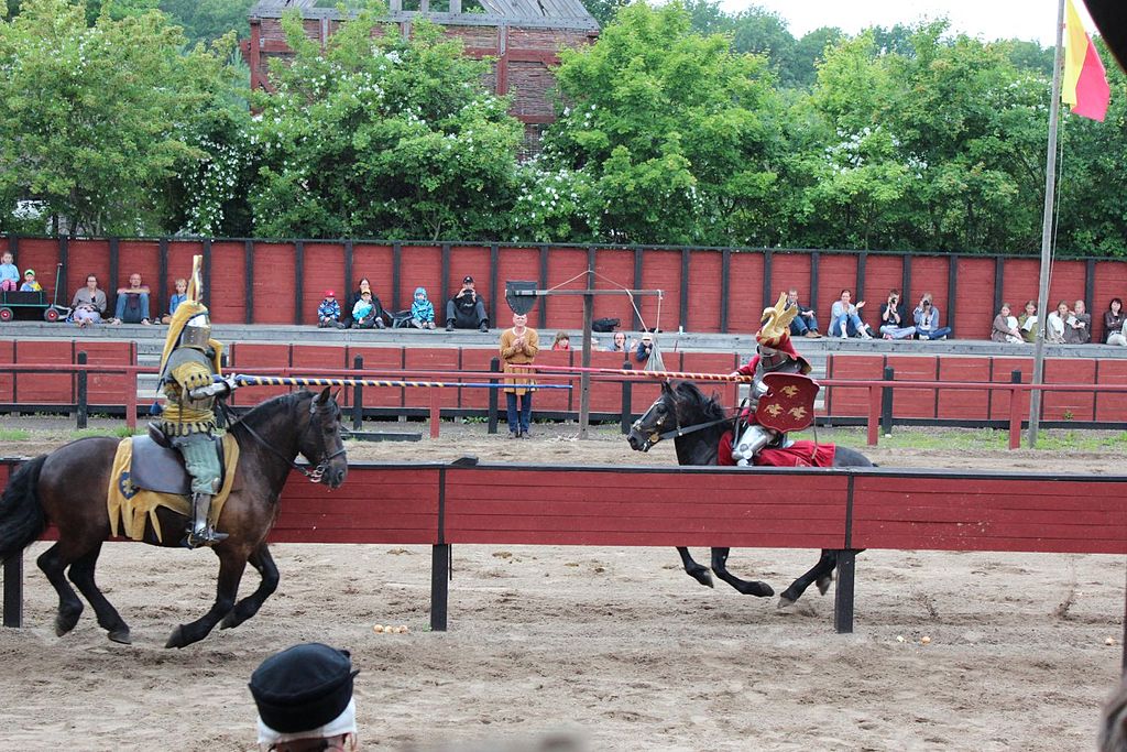 The knight would gallop his horse during the joust and aim his lance at the opponent’s throat or shield. Seemingly, the knights were occasionally separated by a tilt (a wooden barrier) that ran the field’s length to prevent the knights from colliding head-on. Complex rules were devised, with points awarded for the number of hits to specific body parts, such as the visor and shattered lances. Mechanical shields that shattered when struck were developed over time, clearly indicating who hit who first. The winner received a jewel, a gold crown, a falcon or a horse, and in some cases, a lady’s kiss. The most valuable prize was a ransom from the loser, which included a fee, horse, armor and weapons upon his word that he would pay his debt.