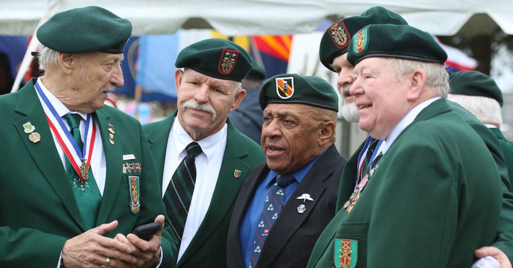 Featured Image: Vietnam-era 5th Special Forces Group (Airborne) Soldiers participate in 5th SFG(A)’s flash changeover ceremony at Fort Campbell, Kentucky, March 23, 2016. During the ceremony, 5th SFG(A) reinstated the Vietnam-era beret flash, adding a diagonal yellow stripe with three red stripes to the existing black and white background. The stripes pay homage to the Group’s history in the Vietnam War and its crucible under fire.