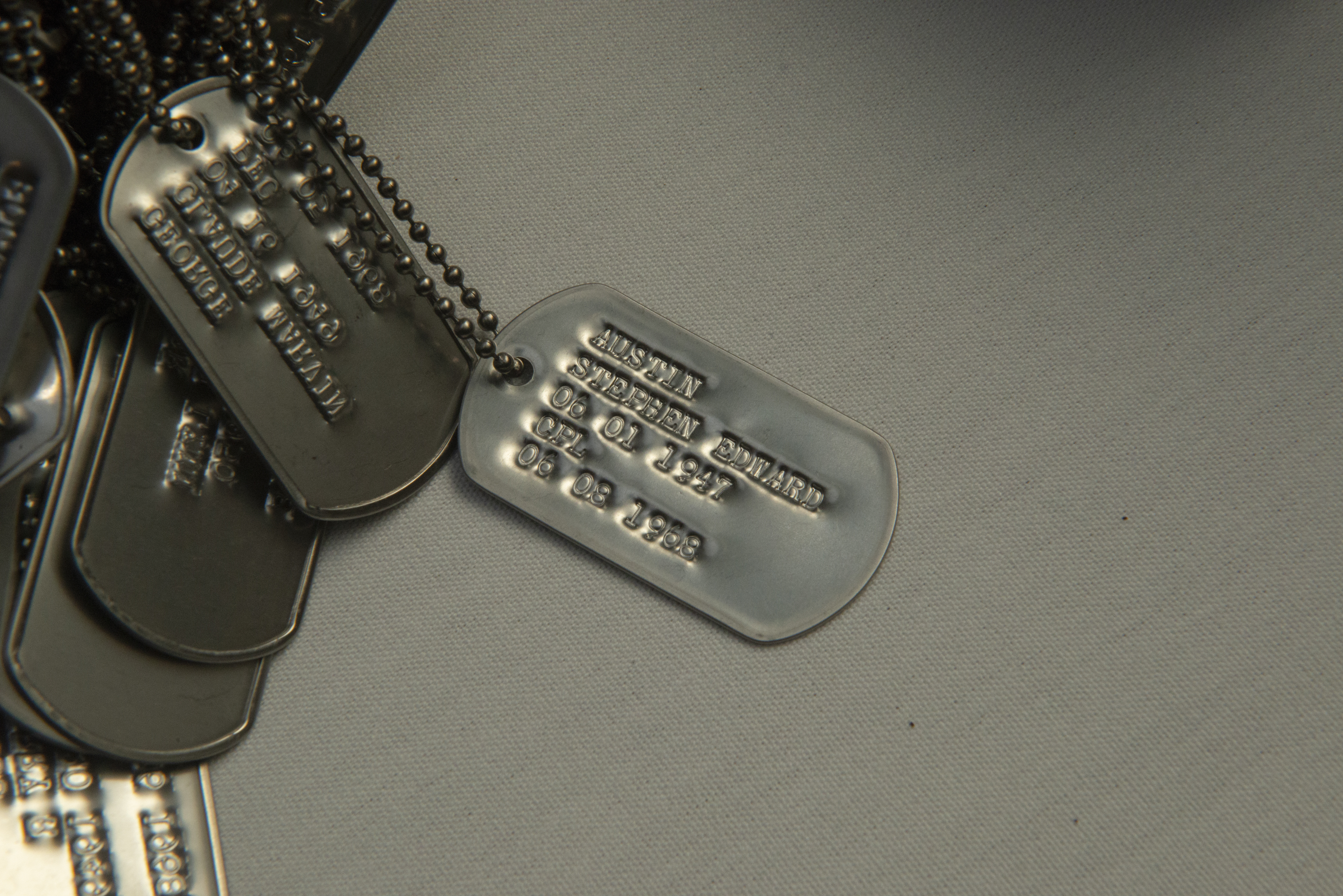 Dog tags once worn by Stephen Austin during his military service, when ended when he was killed in action.
