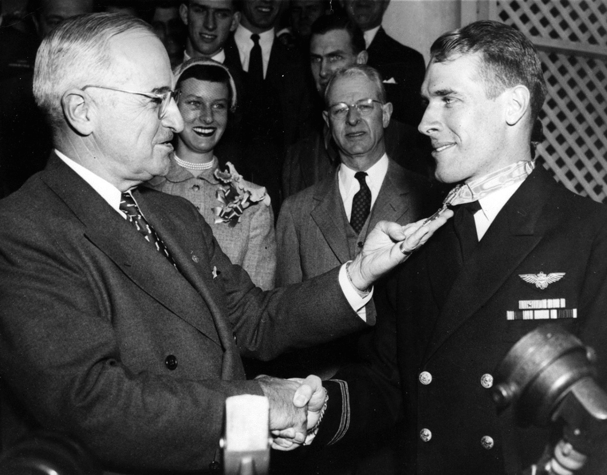 Lt. j.g. Thomas Hudner received the Medal of Honor from President Harry S. Truman for his attempted rescue of Ens. Jesse Brown.