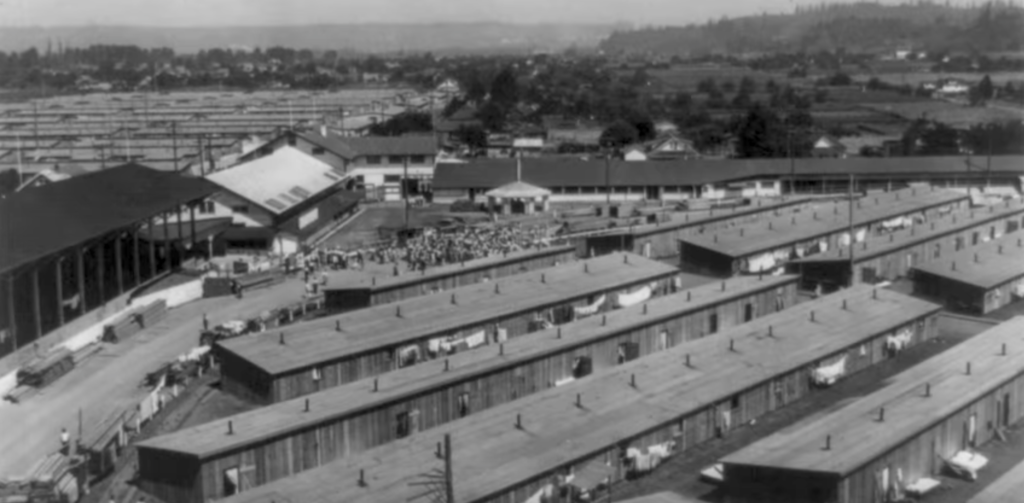 A high angle of Puyallup fairgrounds in western Washington that was converted into an internment camp. (Source: Densho/YouTube/Screenshot)