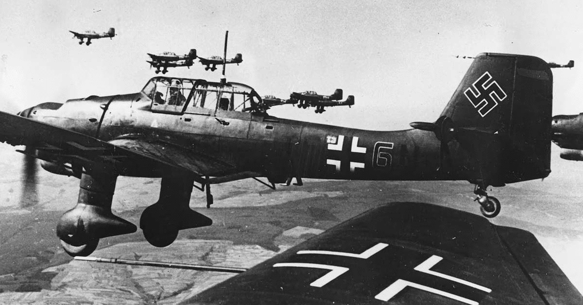 At the start of World War II, the Junkers 87-B dive bomber was the Nazi’s first mass-produced fighter aircraft, already perfected in the Spanish Civil War and ready to take on the French, British, and later, the Red Army. Nicknamed the Stuka (from the German word for “dive bomber”), the Junkers 87-B would become the iconic Nazi warplane. It was less about its ability in the air (which was top of the line for the time) it was because of the sound the dive bomber made when zooming toward an earthbound target. The Nazis called it the “Jericho Trumpet” – and it was totally unnecessary.