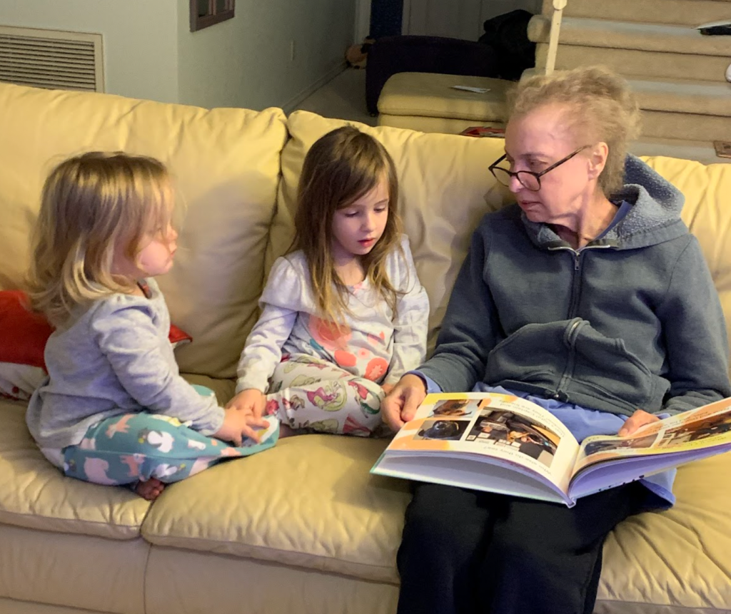 Despite my focus, I made some core memories during my stay. There was the time my mom helped me fry the latkes for Hanukkah, one of the last times we cooked together. My mom read to the girls often, sharing her favorite books from my childhood with them snuggled up together. We made our annual trip to Zoolights, although rather than pushing a wheelchair we opted for drive-thru style, staying warm. I started helping my mom with a photo digitization project by organizing family photos dating back to the late 1800s. Mom told us who people were in many photos and even shared stories while we did slideshows of some of her favorite trips, including rafting down the Grand Canyon and visiting Europe with her mom.