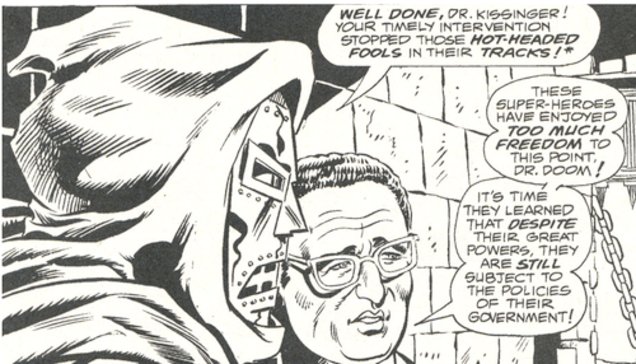 Dr. Doom is obviously a state sponsor of terrorism. Doom is responsible for the proliferation of chemical weapons, attempted assassinations of allied heads of state, and oh so many crimes against humanity.